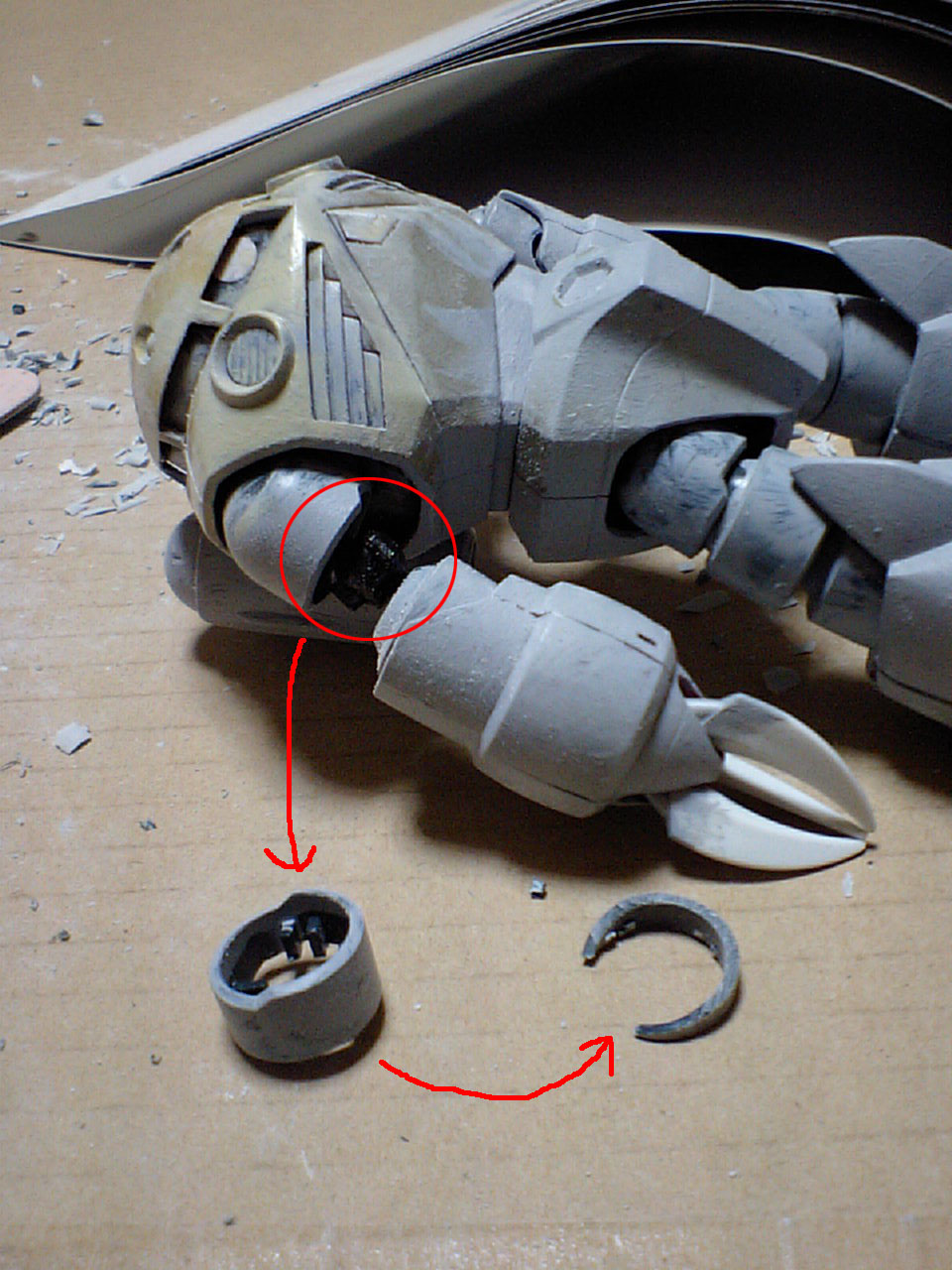 で、その前に落としてしまった肩アーマーの取り付け基部?の部分は、塗装いけにえ用のズゴック君より