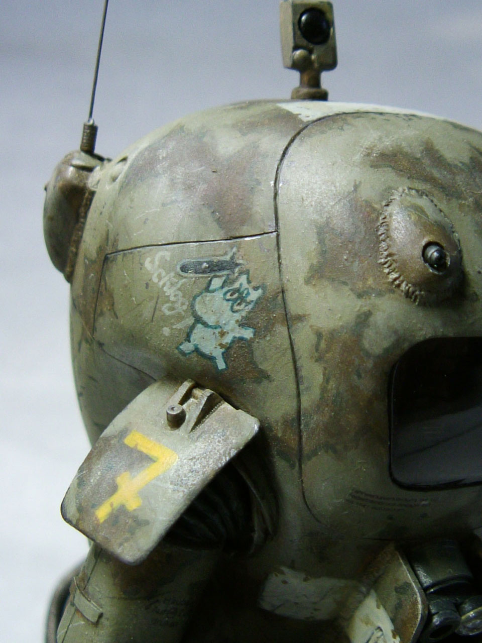 この後、墨入れ、部隊マーク描き、デカール貼り、チッピング、ウェザリングなどが残ってます。